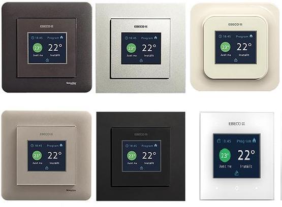 Цвет белый, 230 B, +5..+35°C, встраеваемый (монтируемый на стену в монтажную коробку), с ЖК-дисплеем и таймером работает с датчиком пола на проводе(3м, макс. Ø 6 мм) и с датчиком температуры воздуха. Предустановленные программы снижения ночной температуры для дома и офиса. Укомплектован рамкой Schneider Electric(серия-Exxact). Также подходит для рамок Elko и Gira. Дополнительно в комплекте есть центральная плата цвета слоновая кость. Пыле и влагозащита IP21.